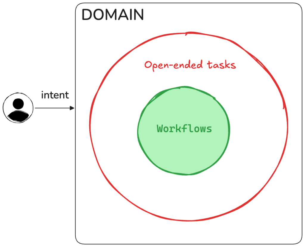 For a customer support agent, open-ended problems should cover everything within your domain that isn’t handled by existing hardcoded paths—using a disallow list instead of an allow list to define boundaries.