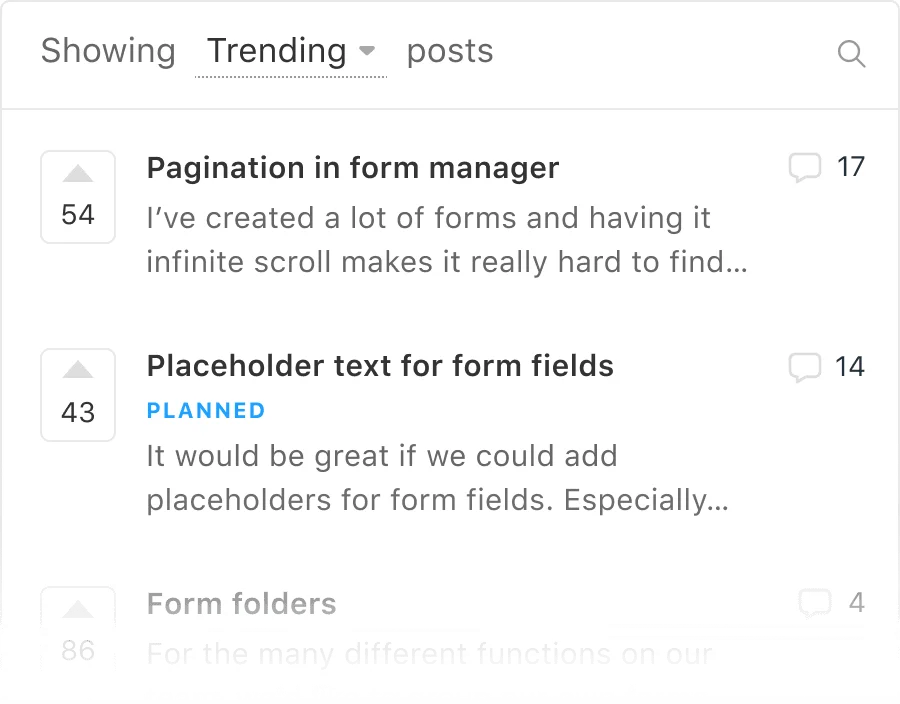 Example from Canny.io where users can submit feature request & vote it to be picked up in future releases