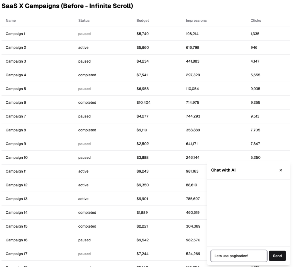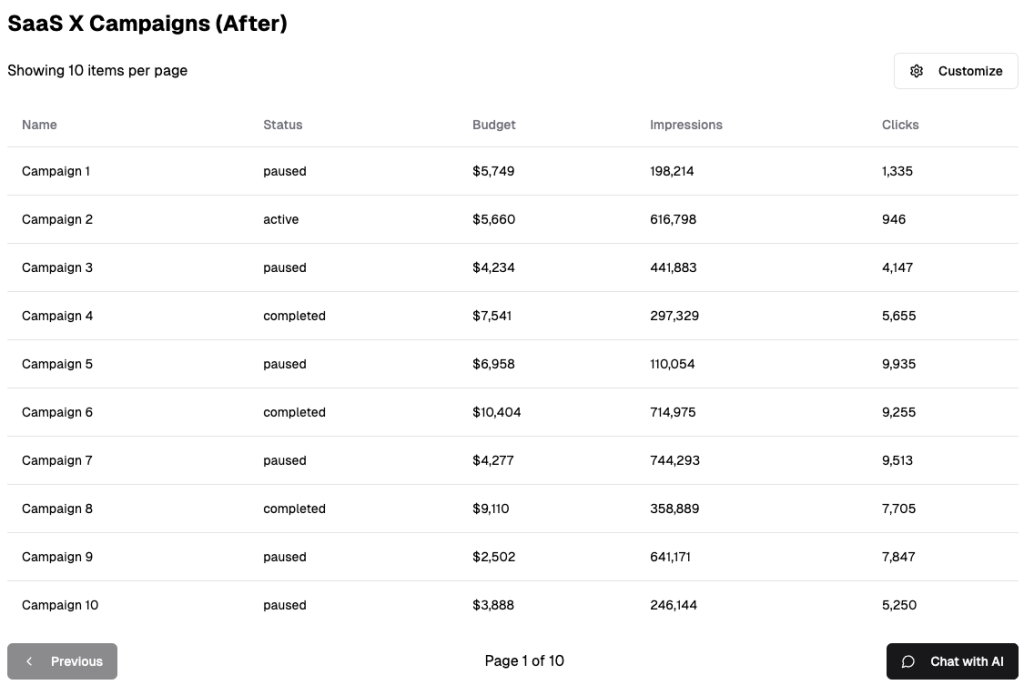 You're a power user of SaaS X, a marketing campaign software you rely on. As your campaign volume grows, the product slows down and becomes difficult to navigate. You crave more control, like the ability to adjust pagination size. Currently, you're stuck submitting product requests or upvoting existing ones, hoping for enough support. In the future, you'll simply ask <the magic input box> of the app you are using to "adjust the layout" and expect instant results.